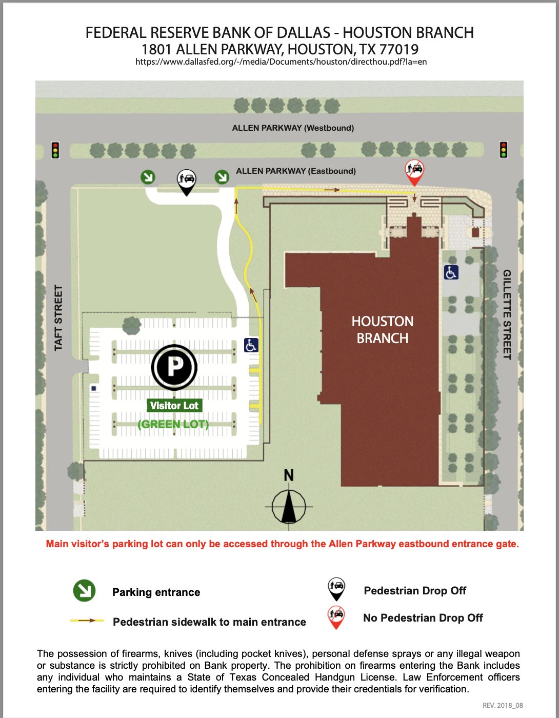 • Access to the visitor parking lot is through the Allen Parkway eastbound entrance gate.
