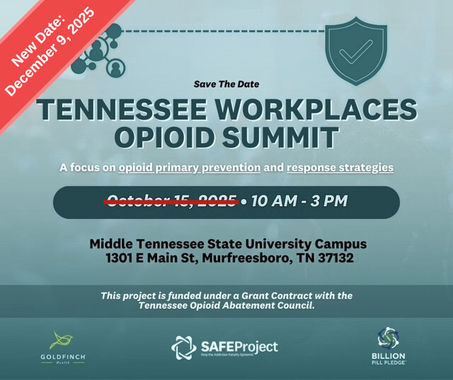 Hosted by SAFE Project, this event will focus on opioid primary prevention and response strategies to help Tennessee’s workplaces and communities tackle the opioid epidemic together.